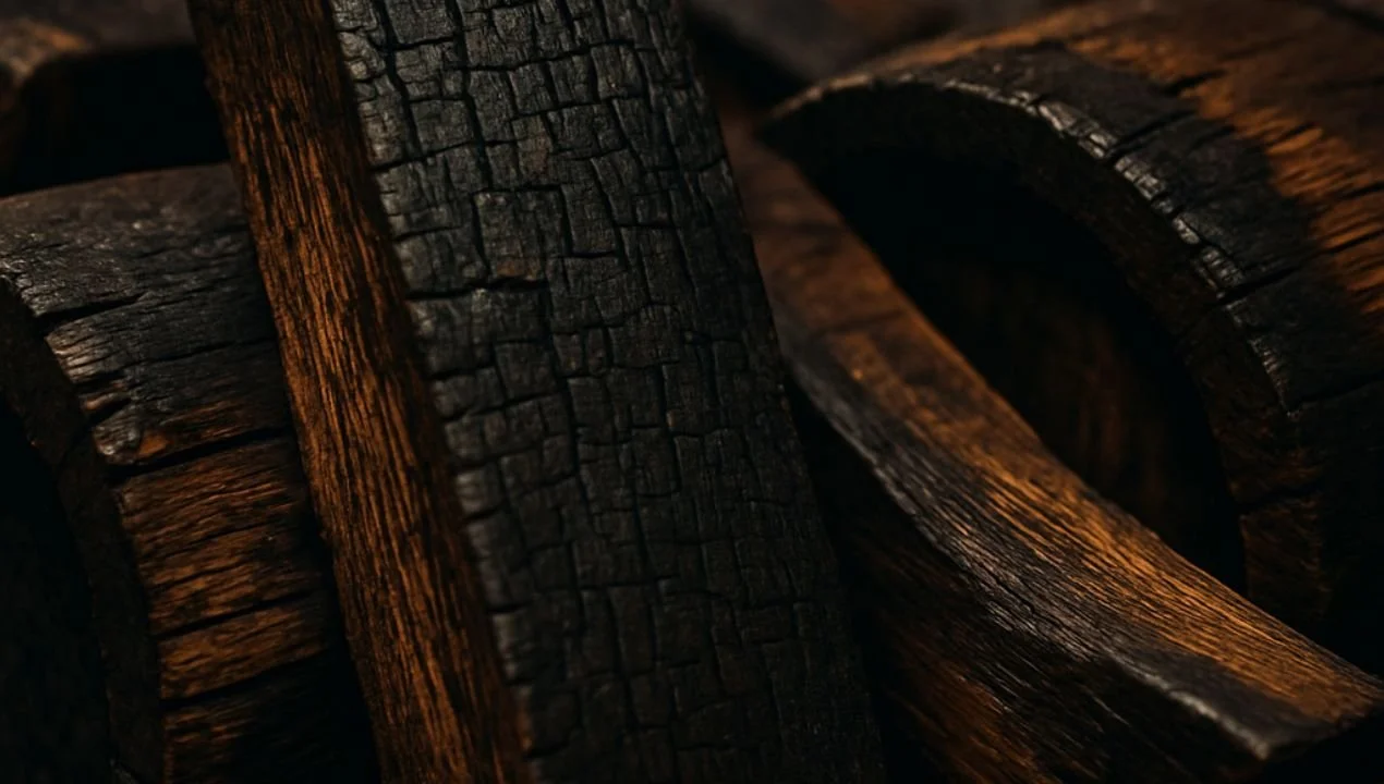 Charred oak staves — the foundation of flavour development in malt and whisky-style spirits.